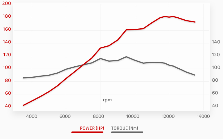 133,8 kW (182 hp) pri 11 750 otáčkach