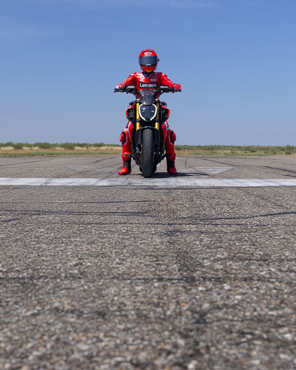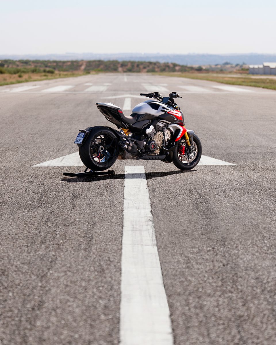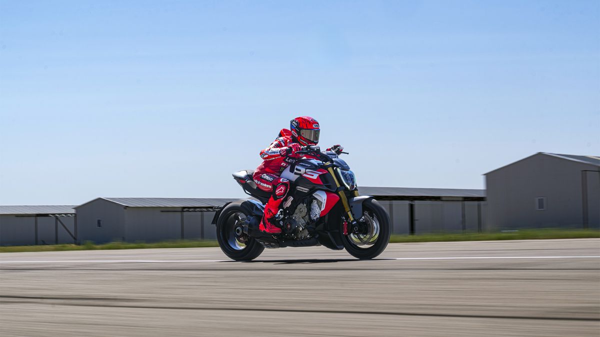 Diavel V4 RS dvíha latku čo sa týka výkonu a adrenalínu, pre najrýchlejšie zrýchlenie v rade Ducati: z 0 na 100 km/h iba za 2,5 sekundy, tento referenčný bod doteraz patril výlučne motocyklom MotoGP. Pretekársky motor Desmosedici Stradale s objemom 1103 cm3 dokáže uvoľniť maximálny výkon 182 koní, čo je o 14 koní viac v porovnaní s motorom V4 Granturismo modelu Diavel V4. Motor dopĺňa suchá spojka STM-EVO SBK a titánový výfuk.