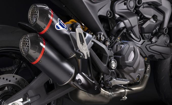 Monster SP preberá farby oficiálneho tímu Desmosedici GP, pridáva odpruženie Öhlins a homologovaný tlmič Termignoni, strmene Brembo Stylema® a pneumatiky Pirelli Diablo Rosso IV. Skutočne športová výbava, vďaka ktorej si zamilujete nový Monster SP. Dostupný aj v 35kW verzii.
