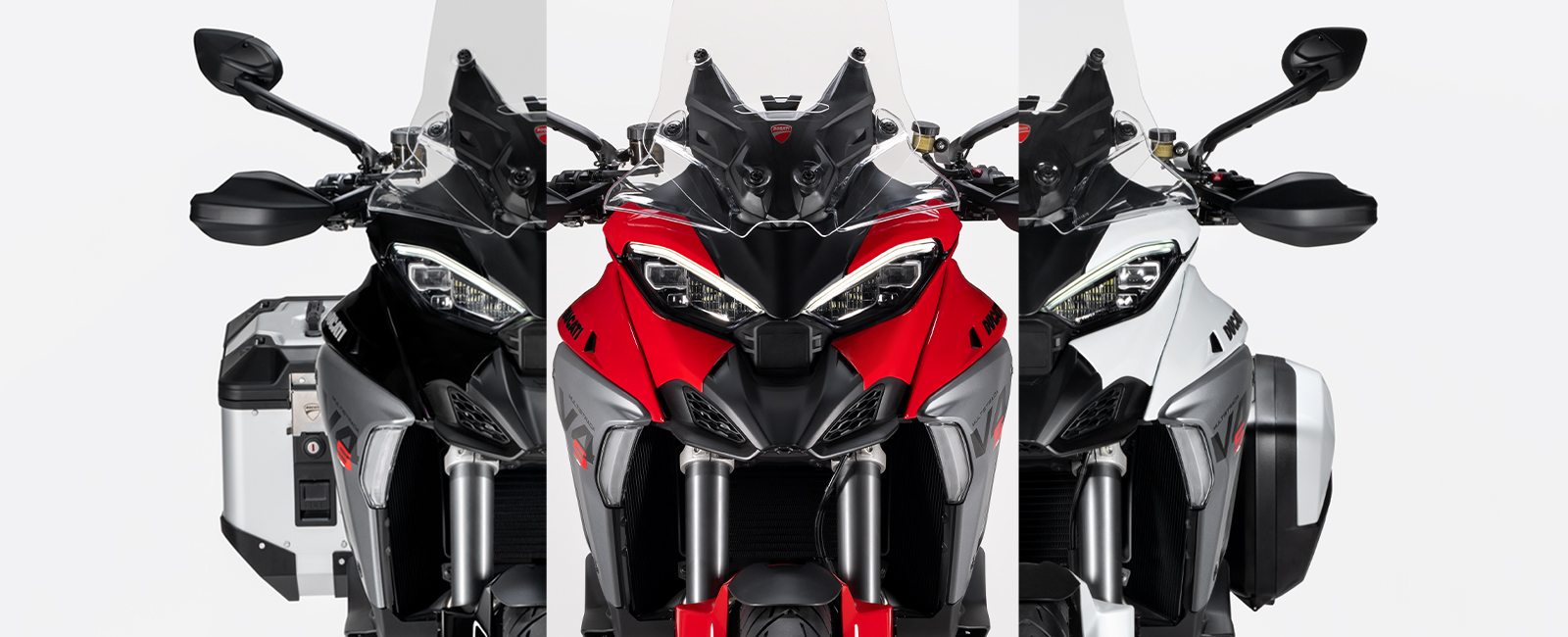 Novú Multistradu V4 je možné starostlivo prispôsobiť pre ešte luxusnejší a na mieru šitý zážitok. Môžete si vybrať medzi tromi farbami, plastovými alebo hliníkovými kuframi, tromi rôznymi možnosťami kolies a piatimi úpravami. Okrem toho máte prístup k celému radu príslušenstva.
