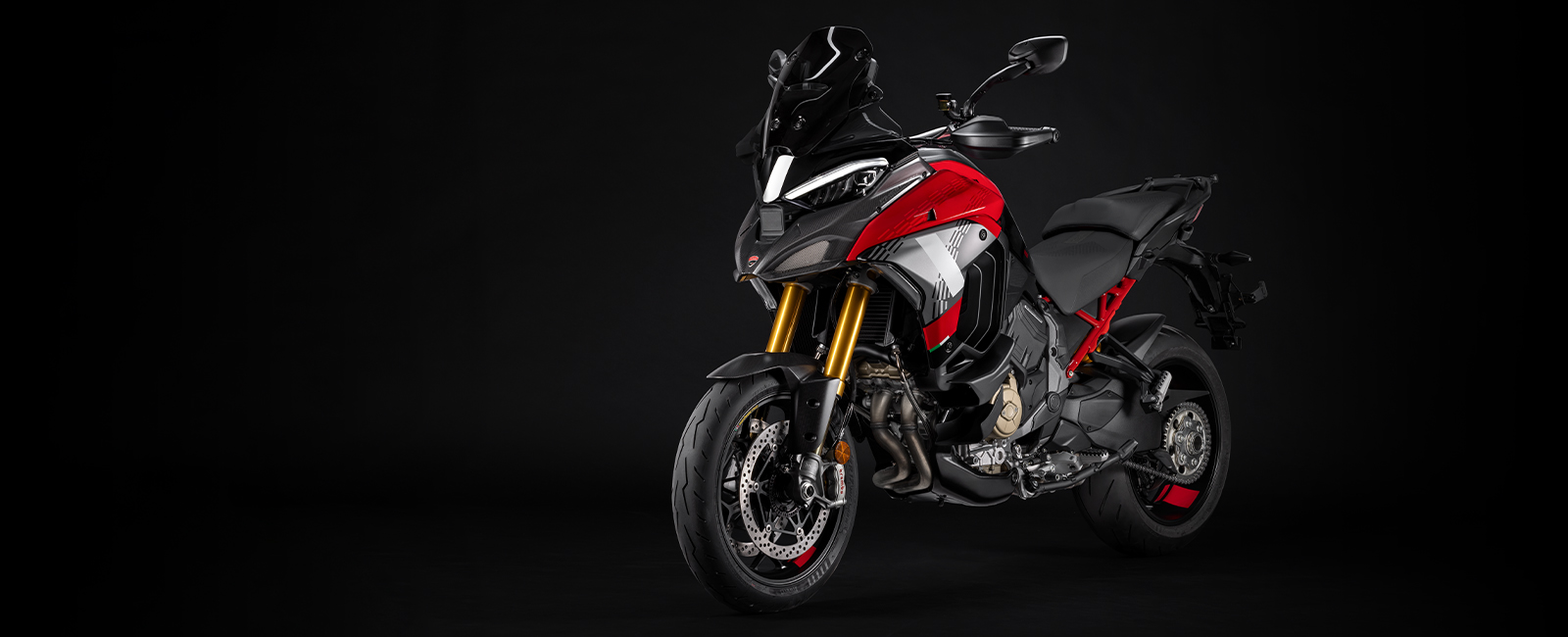 | štandardná výbava | Öhlins Smart EC 2.0 elektronické tlmiče, Ducati Quick Shift (DQS) up/down, Adaptívny Tempomat, Hands -Free, Podsvietené tlačidlá, 6.5" TFT farebný diplej s Ducati Connect a navigáciou s plnou mapou, Full LED svetlomet, Karbónový predný blatníka zobák, Typovo schválený Akrapovič | |
