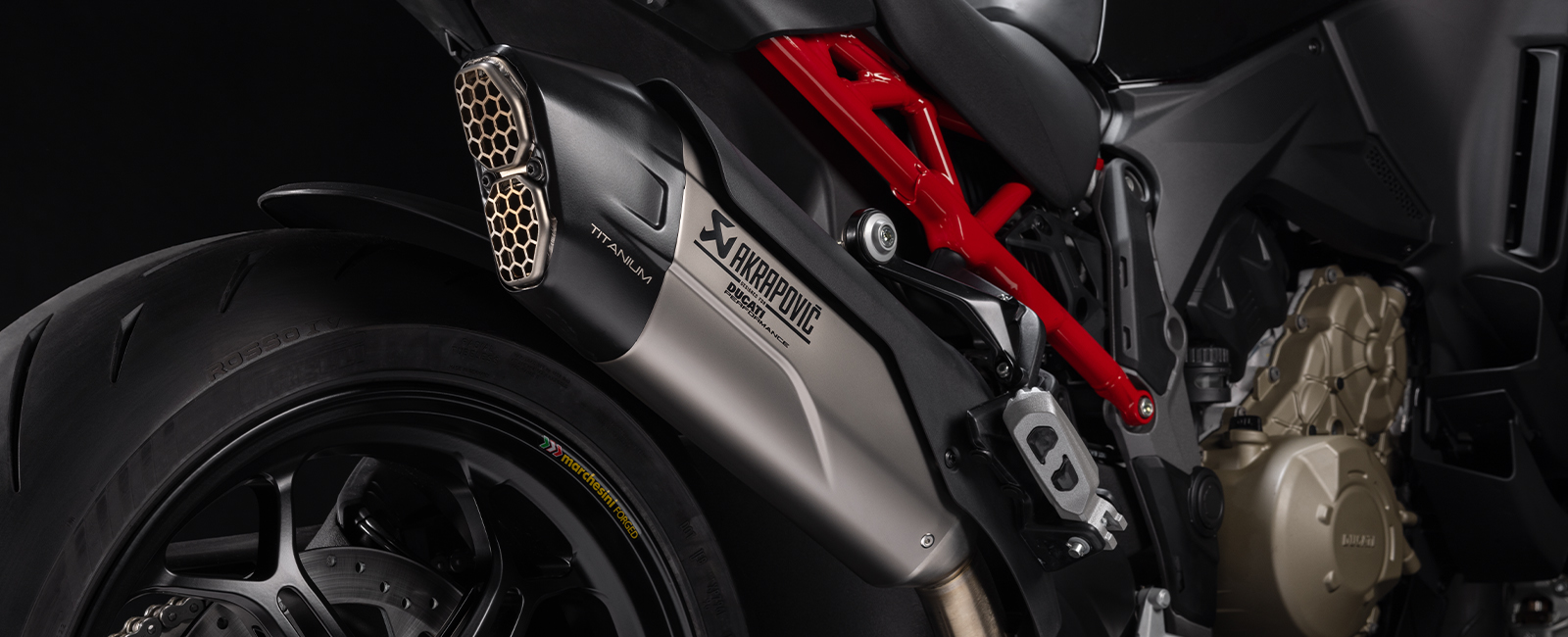 Akrapovič výfuk s homologizáciou Euro 5+ a karbónové prvky umocňujú výkon a ovládanie, pričom pozdvihujú športovosť a ľahkosť motocykla do extrému.