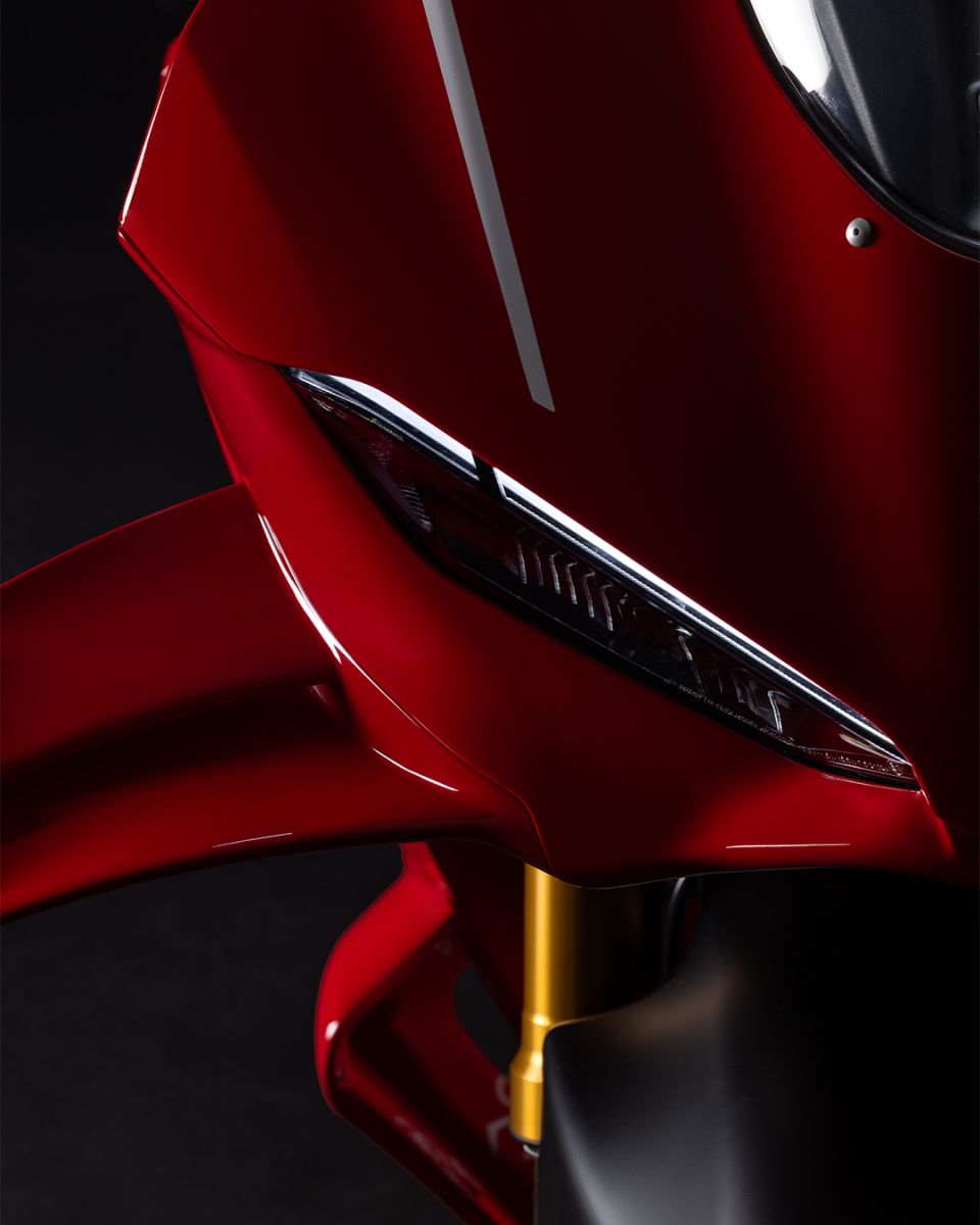 Kompaktné tvary, ostré línie a pokročilé technické riešenia založené na výskume aerodynamiky sa spájajú a vytvárajú vzrušujúcu a agresívnu estetiku. Zrodená, aby prekonala všetky limity. Panigale V4 R si zachováva vyvážené proporcie modelu Panigale V4 a pridáva pokročilé aerodynamické riešenia, ktoré ďalej zdokonaľujú dizajn, čím sa dosahuje výrazný vývoj v porovnaní s predchádzajúcim modelom. Nasávacie potrubia majú teraz čistejší vnútorný povrch pre lepšiu priepustnosť v porovnaní s predchádzajúcou konfiguráciou, pričom škrtiaca klapka je úplne otvorená pri maximálnom zdvihu ventilov. Väčšiu príťažlivosť a autenticitu podčiarkujú komponenty z karbónu a nádrž z brúseného hliníka.