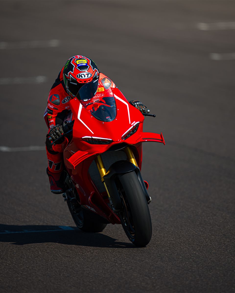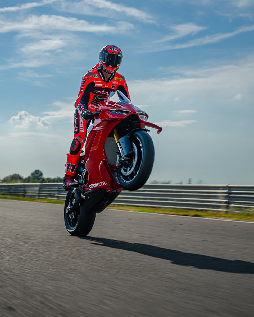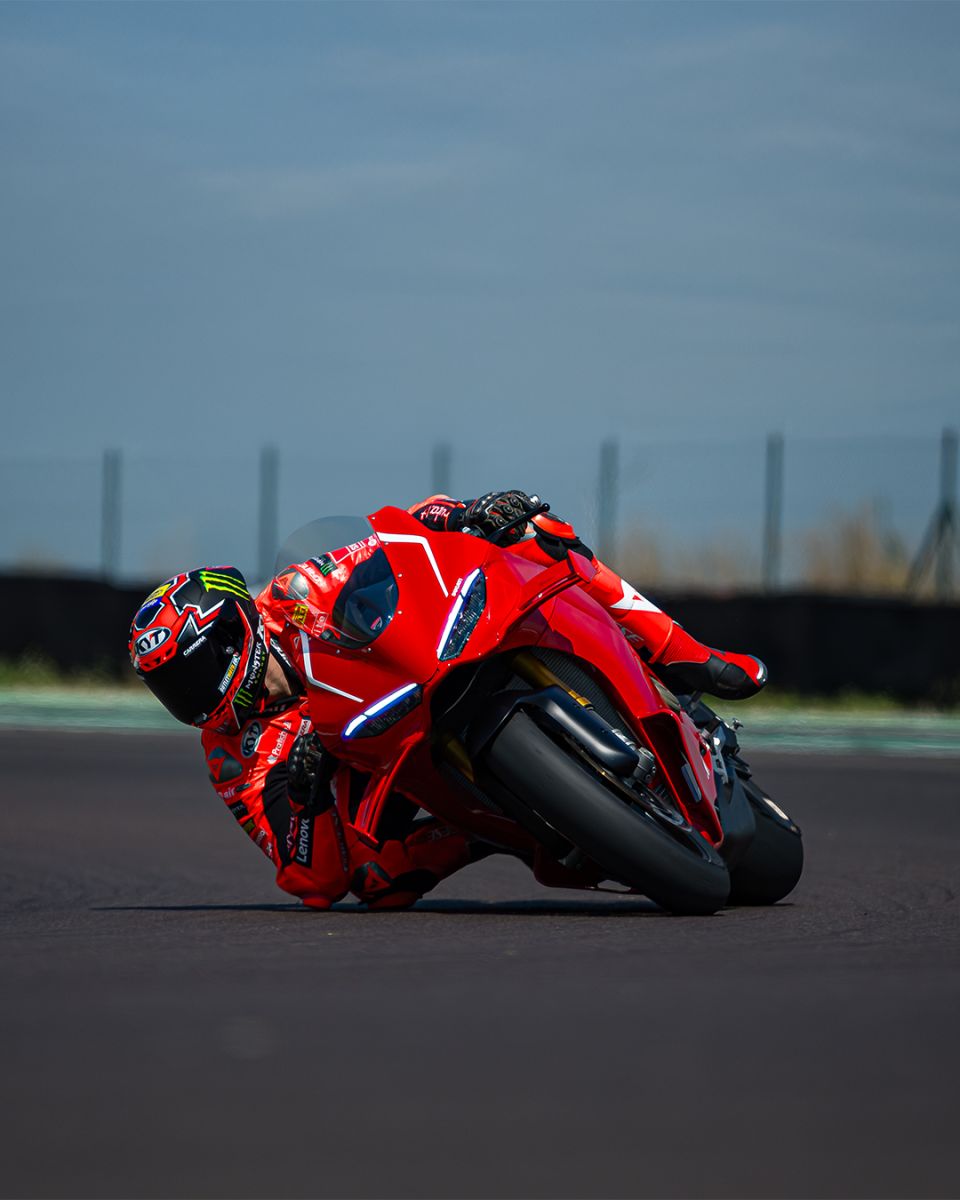 Najnovší vývoj legendárnej ságy, ktorá stelesňuje športový prístup Ducati. Nová Panigale V4 R, vyvinutá s ohľadom na predpisy majstrovstiev WorldSBK, stelesňuje úspech, ktorý Ducati dosiahla v MotoGP a Superbikoch. Poháňaná motorom Desmosedici Stradale s objemom 998 cm3, je prvým motocyklom homologovaným na prevádzku v cestnej premávke, s Corner Sidepods a pretekárskou prevodovkou Ducati s Ducati Neutral Lock (DNL).