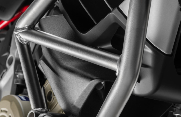 Multistrada V4 je vybavená obojstrannou zadnou vydlicou novej generácie s jedinečným dizajnom inšpirovaným princípmi aditívnej technológie.