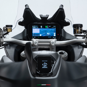 Nová Multistrada V4 je vybavená najmodernejšou elektronikou Ducati. Predný / zadný radar a nová generácia zrkadlového systému Ducati Connect umožňujú príjemnejší, bezpečnejší a pohodlnejší zážitok z jazdy.